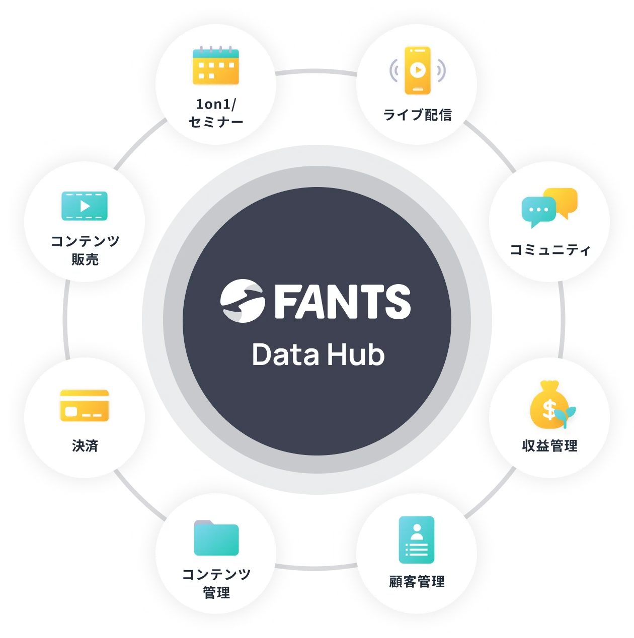 ※現在、顧客管理はFANTSサービス販売・FANTSコミュニティ単位での提供となります。将来的には、全サービスをつなぐ機能へと順次拡張予定です。